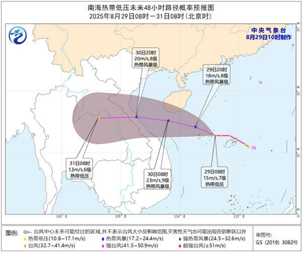 中国天气网讯 中央气象台8月29日10时继续发布热带低压预报: