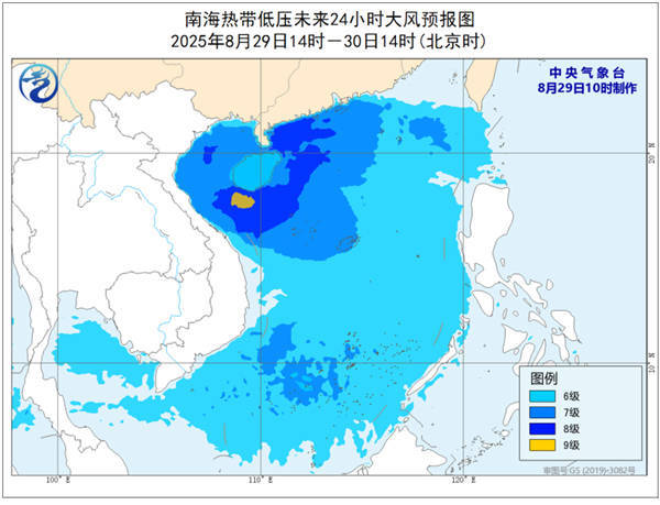 大风预报:29日14时至30日14时,南海大部、中沙群岛、西沙群岛、南沙群岛和黄岩岛附近海域、北部湾、琼州海峡、广东沿海、广西沿海、海南岛沿海有6-7级大风,其中海南岛南部和东部近海、广东中西部近海风力有8级,阵风9-10级,部分海域风力达9级,阵风10-11级。